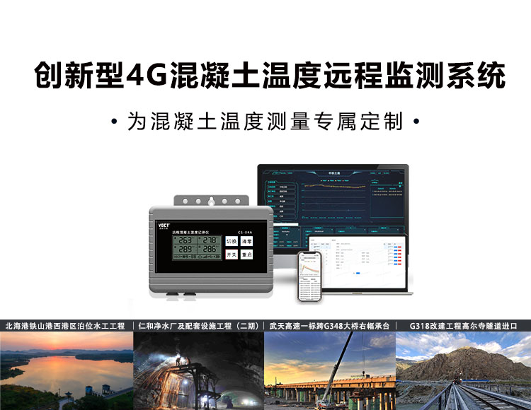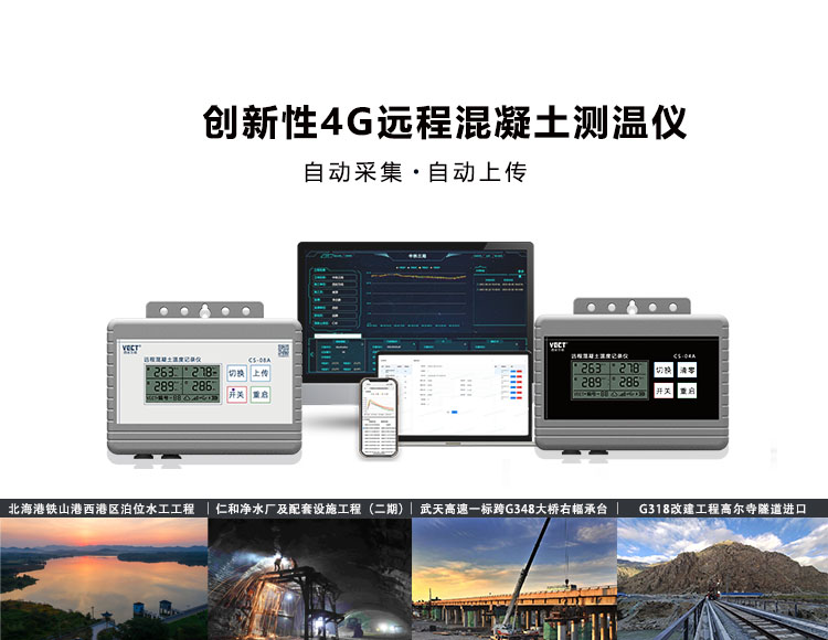 CS-08A深度融合物联网技术,依托先进的混凝土测温平台,为用户提供高精度温度监测解决方案。通过可视化数据界面,用户可通过手机或电脑实时查看动态降温速率曲线与实时温差变化趋势,精准捕捉混凝土温度的每一丝微妙变化,确保施工全程数据透明、实时监测。 无论是高层建筑的复杂施工,大型桥梁的精细作业,还是隧道工程的严苛环境,CS-08A都能轻松应对,为您的施工项目提供全方位、智能化的温度监测解决方案。选择CS-08A,就是选择专业与安心,让每一个工程都成为精品!